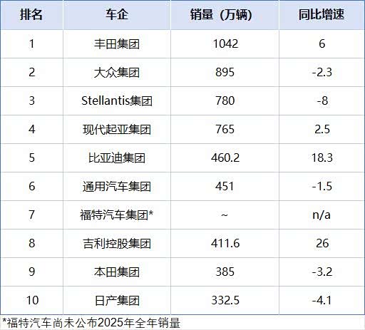 全球的车市格局正在被改写,通用汽车2025年的全球销量被比亚迪超过。
