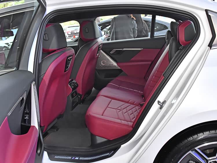 侧面造型方面,车身线条比较硬朗,有那么点小号宝马i7的感觉,搭配鲨鱼鳍带来了一定的运动感,腰线采用了贯穿式设计,让视觉效果显得修长大气,门把手则是内凹式设计,能够起到降低风阻的作用;轮毂采用了双五辐式造型,风格比较简洁。