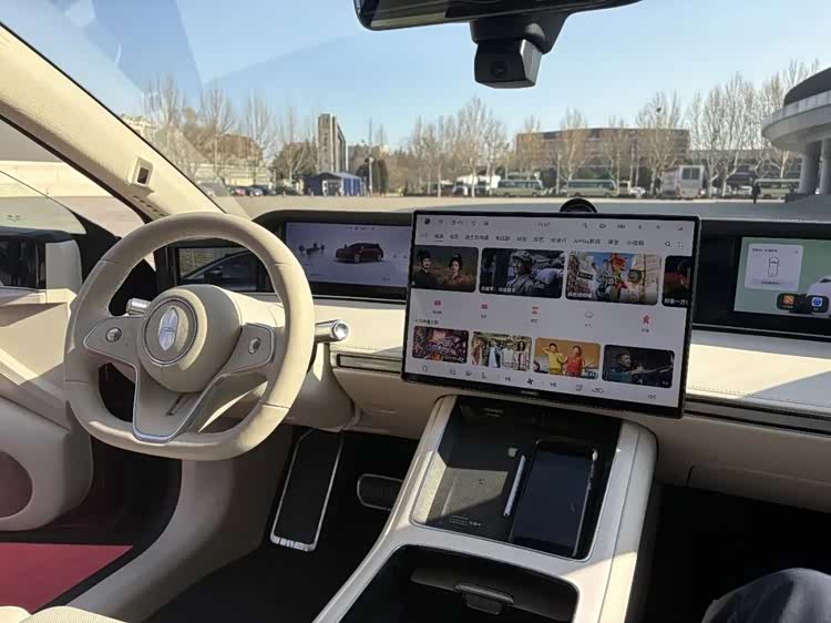 前排仪表台采用整体式玻璃面板,将14.4英寸中控屏与12.3英寸副驾屏融合成“超级屏”,副驾屏的隐私模式既能保障娱乐体验,又能避免干扰驾驶者。