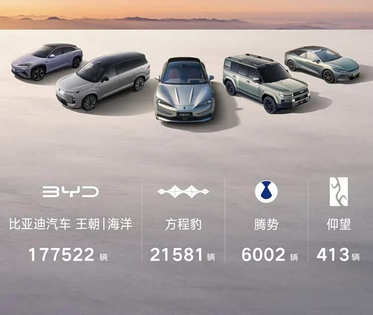 方程豹为21581辆,同比大涨247%,已成为比亚迪新能源子品牌的核心支柱,并领跑硬派越野细分市场。此外,腾势6002辆;仰望为413辆。