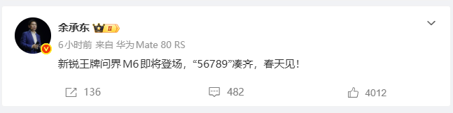 除开“5789”四款车型外,余承东今日官宣M6春天见,此前网上也曝出了该车型的部分信息,设计上延续了M8的设计语言,细节上曝出了略带溜背的车顶线条加上隐藏式门把手、梅花瓣轮毂,以及红色卡钳罩等。而关于动力部分,有消息称M6也将使用增程、纯电双动力路线,并有概率采用大电池,纯电续航里程在300km以上。