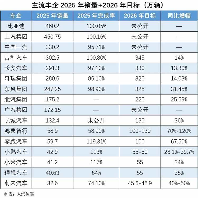 一边是销量低迷、成本高企、价格战失效的残酷现实,一边是车企雄心勃勃的2026年销售目标,两者之间的巨大落差,折射出行业内部对市场走势的严重分歧,也预示着今年全年行业竞争将更为惨烈。
