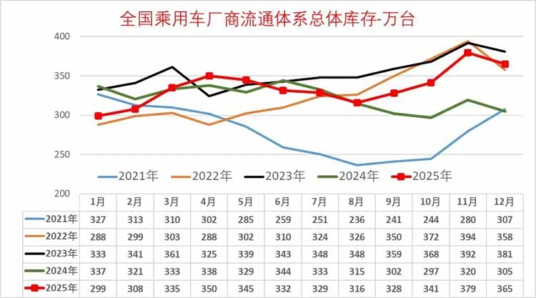 此外,高库存的压力进一步制约了销量增长。截至2025年12月末,全国乘用车行业库存达365万辆,库存天数66天,较2024年同期增加20天,即便所有车企立刻停产,现有库存也足够销售两个多月。