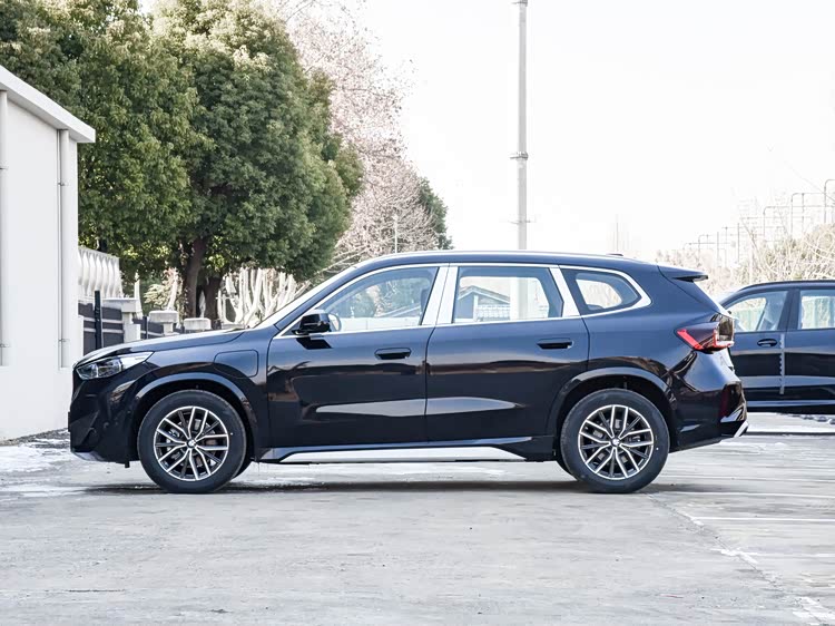 视线再来到侧面,iX1也按照国内用户的使用喜好,进行了加长,再加上整辆车较为挺拔的线条,看上去甚至有一种越级的感觉,这台车还采用了半隐藏式门把手,可以降低风阻也不用担心被冻住,至于车尾,整体上就是家族化的观感了,多重线条设计,亮黑色包围,银色护板,井井有条。