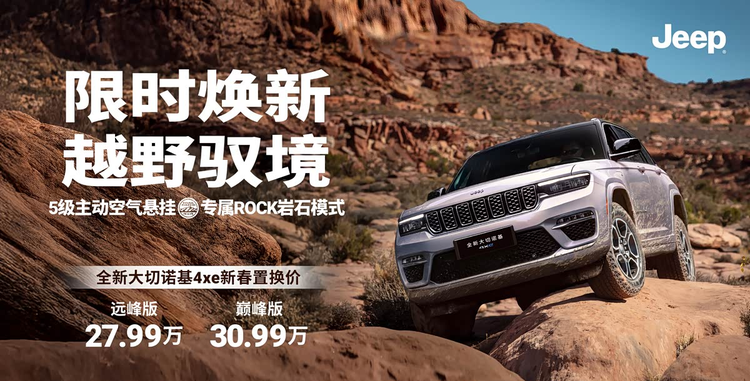 近日,Jeep针对大切诺基4xe车型推出了新春期间的置换价格方案。远峰版本置换后价格为27.99万元,巅峰版本为30.99万元。这一价格包含了相应的置换补贴,活动有效期截至2月28日。