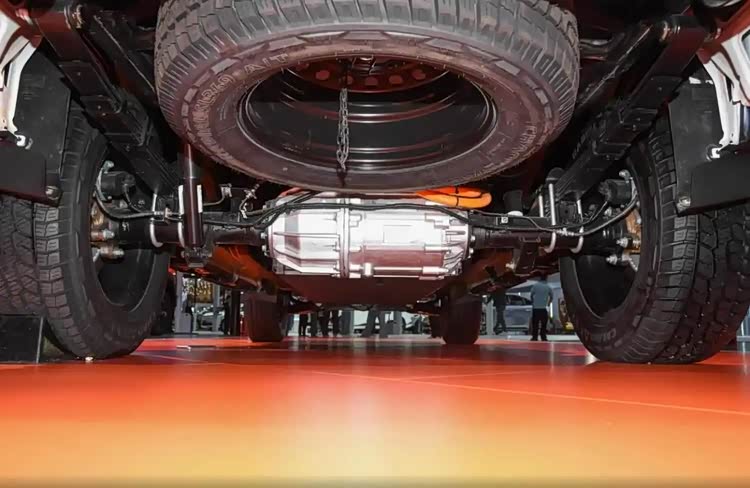 由于纯电版本没有发动机、变速箱、传动轴、油箱、分动箱等,车底可以用护板密封,减少底盘零件磕碰的风险。