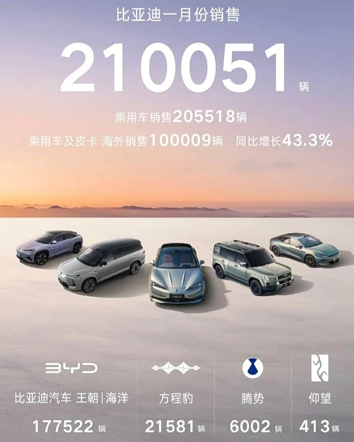 1月车市的惨淡,早已写在多数车企的销量数据里,集体承压成为无法回避的现实。曾长期领跑的比亚迪未能独善其身,销量同比环比双双大幅下滑,即便海外出口势头正盛,也难以填补国内市场的缺口。