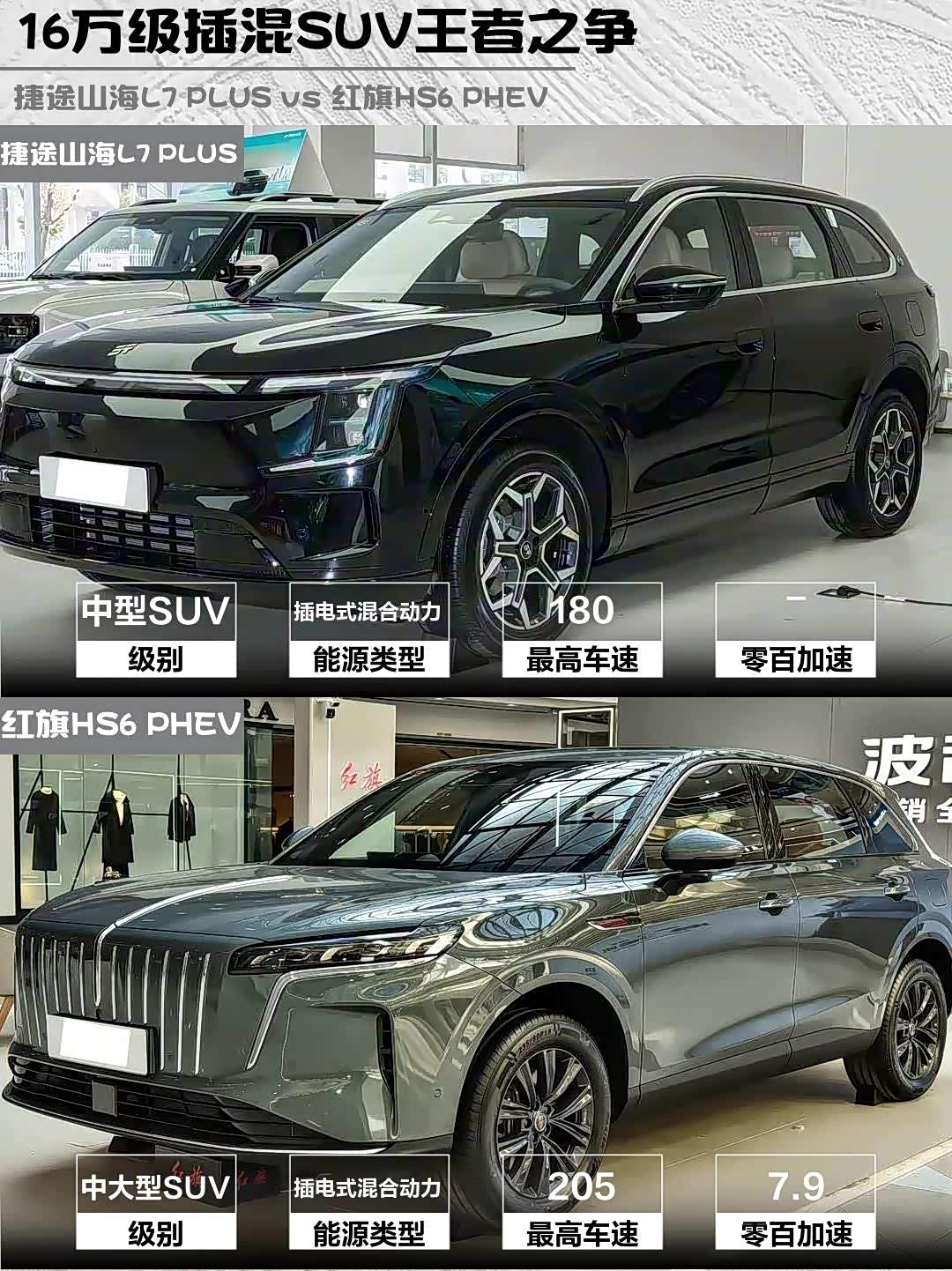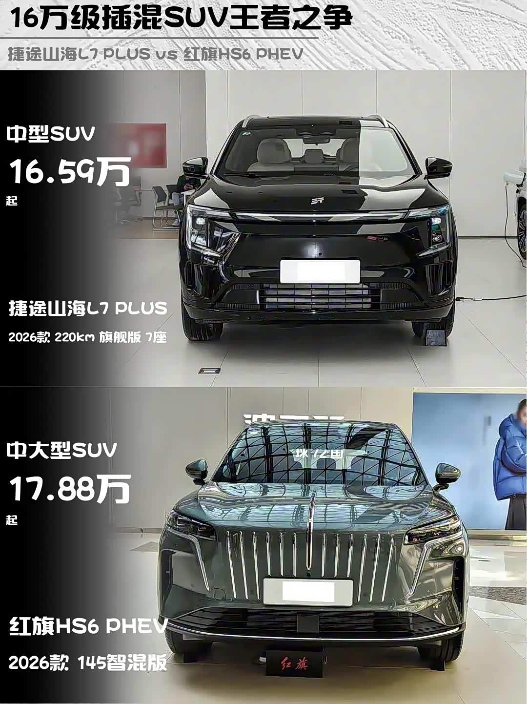 最近身边好几个朋友都在纠结选插混SUV,作为深度体验过 捷途山海L7 PLUS(参数|询价) 2026款 220km旗舰版7座和红旗HS6 PHEV 2026款145智混版的老司机,必须来波硬核对比!🔥