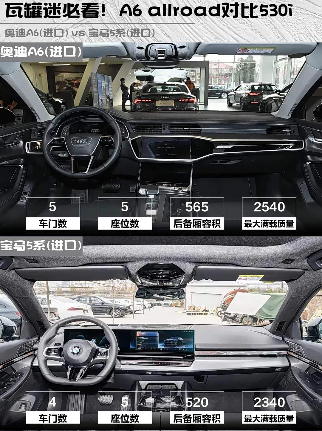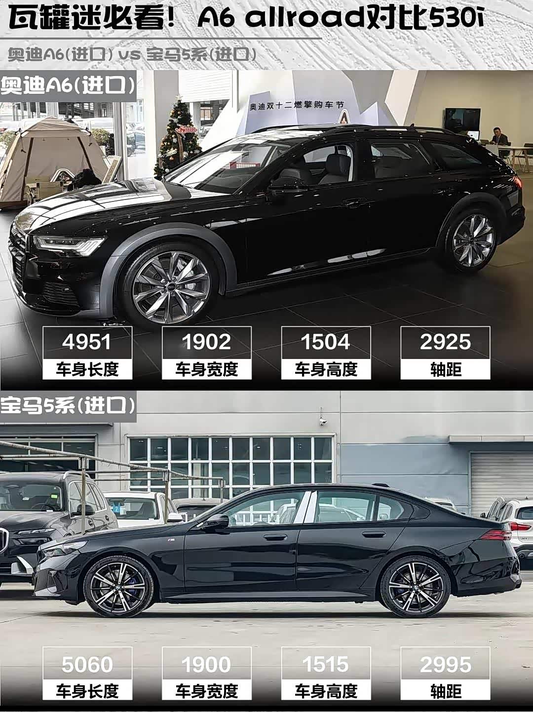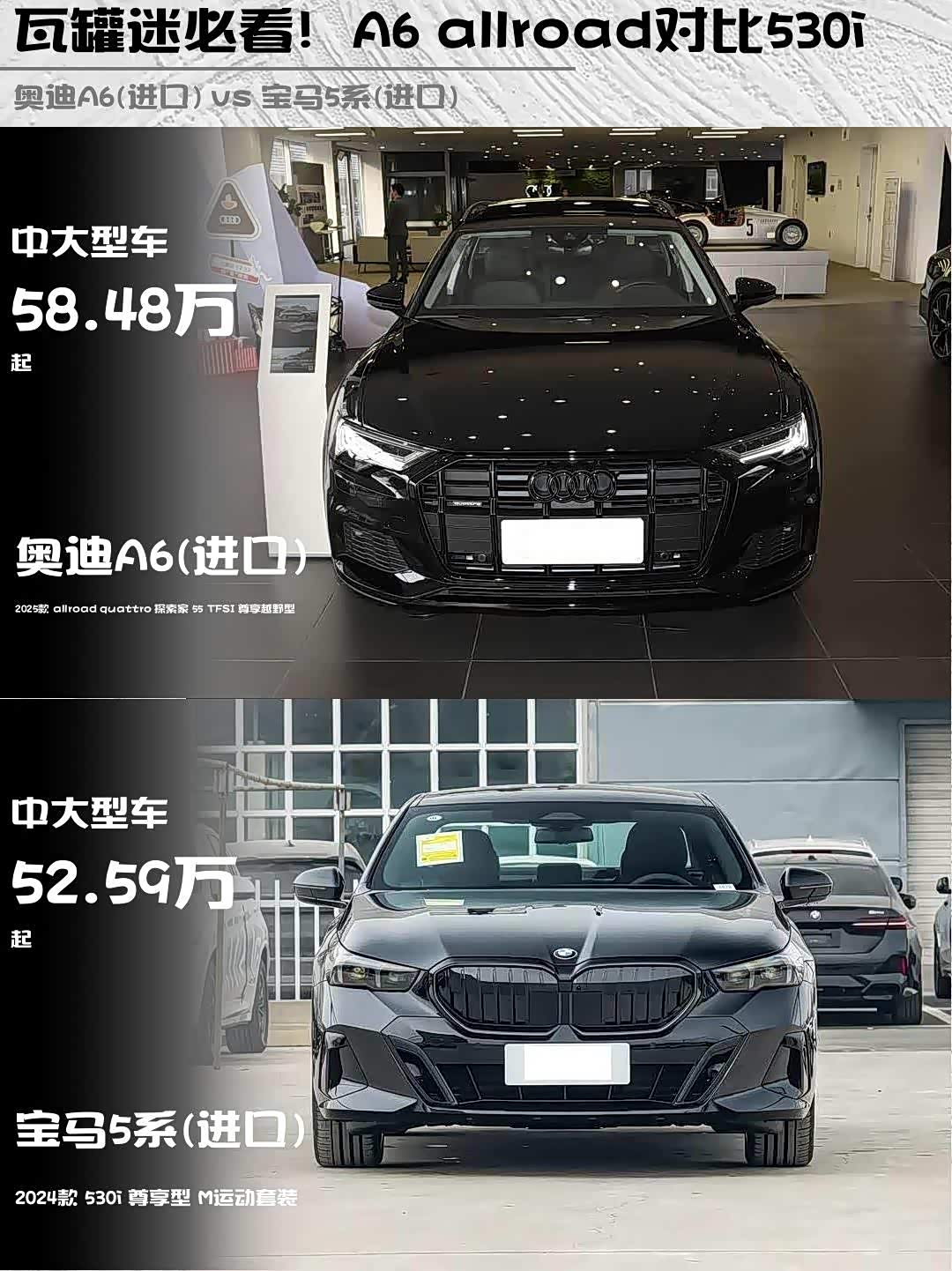 奥迪A6(进口)(参数|询价) 2025款 allroad quattro 探索家 55 TFSI 尊享越野型 vs 宝马5系(进口) 2024款 530i 尊享型 M运动套装,谁才是中产精英的终极座驾?🤔