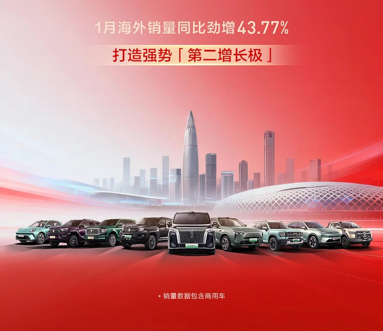 在国内市场整体低迷的背景下,出口市场的逆势爆发成为1月车市最亮眼的风景线,几乎所有主流车企的出口业务都实现了不错的增长,成为车企对冲国内市场波动的核心支撑。