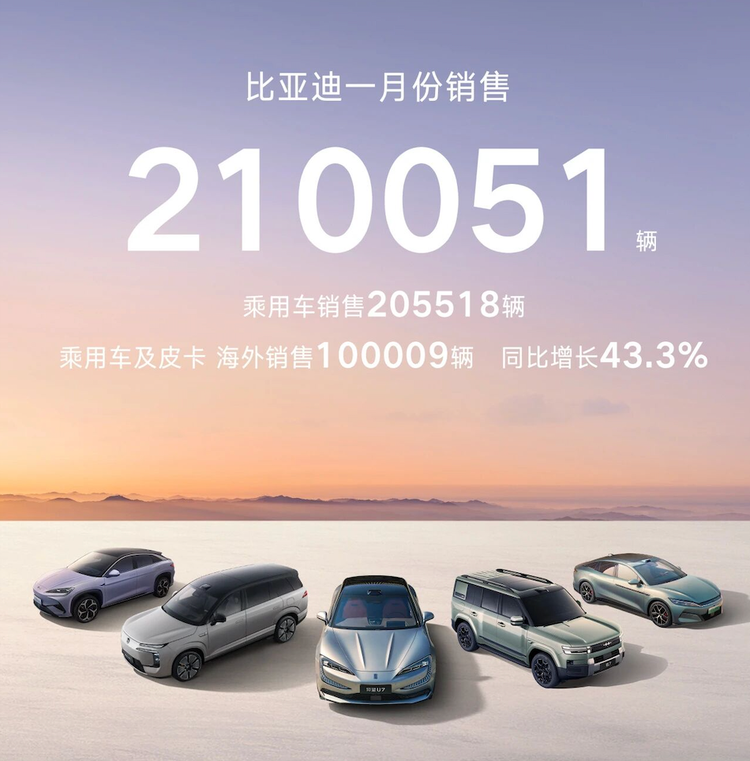 比亚迪的出口业务同样实现爆发式增长,1月出口新能源汽车100482辆,同比大增51.47%,首次突破10万辆大关,占总销量的47.8%,相当于每卖出两辆比亚迪汽车,就有一辆驶向全球110多个国家和地区,随着泰国、巴西等海外工厂的持续发力,其海外市场的增长潜力持续释放。