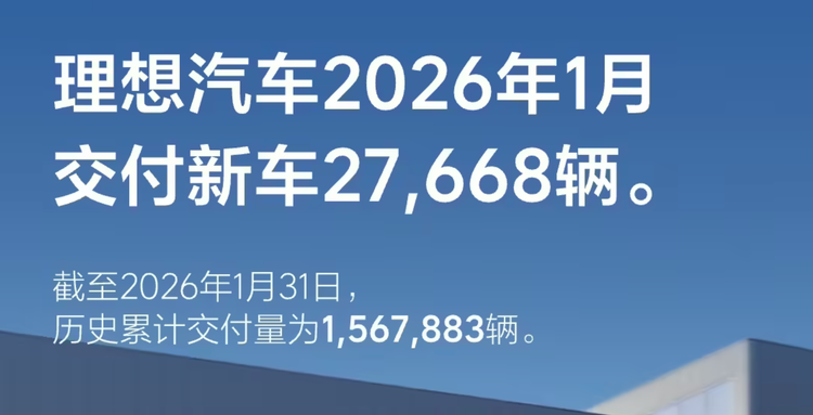 理想汽车1月交付27668辆,同比实现7.55%的小幅增长,是四家车企中增速相对平缓的品牌,环比下滑 37.47% 则受行业共性因素影响。