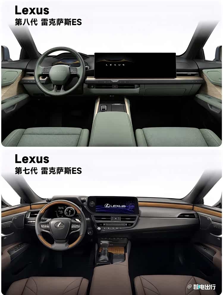 过去雷车内饰给人最深的印象就是高品质用料和精细做工,而新一代ES走的是极简风,不但取消了很多物理按键,还把方向盘中央的品牌Logo换成了秀气的LEXUS英文字母。细心的朋友可能已经发现了,有的新ES内饰前排只有一个悬浮式中控屏,也有的是中控和副驾都有屏幕,这种设计跟很多国产新能源车如出一辙。