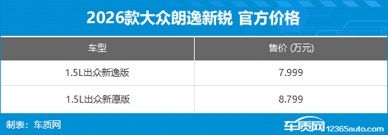 1月29日,2026款上汽大众朗逸新锐已正式上市。新车此次共推出2款车型,分别为1.5L出众新逸版与1.5L出众新愿版,官方售价区间为7.999-8.799万元,相较老款车型保持价格稳定,主要变化在于取消了后备厢备胎配置。