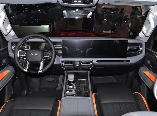 内饰方面,新车在保持硬派取向的同时,整体智能化水平向主流新能源产品看齐。座舱内采用由15.6英寸中控屏与15.6英寸副驾驶娱乐屏组成的双联屏布局,并搭配10.25英寸液晶仪表与流媒体后视镜,形成多屏联动的交互体系。车机系统由高通骁龙8155座舱芯片提供算力支持,支持AI语音交互及多媒体功能。配置层面,其标配了多功能方向盘、真皮座椅以及具备独立功放的10扬声器音响系统,有效兼顾长途穿越过程中的舒适性需求。