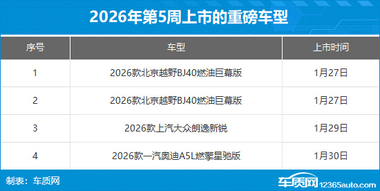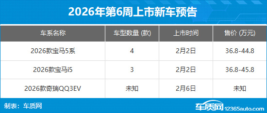 2026年第6周(2月2日-2月8日)上市新车预告