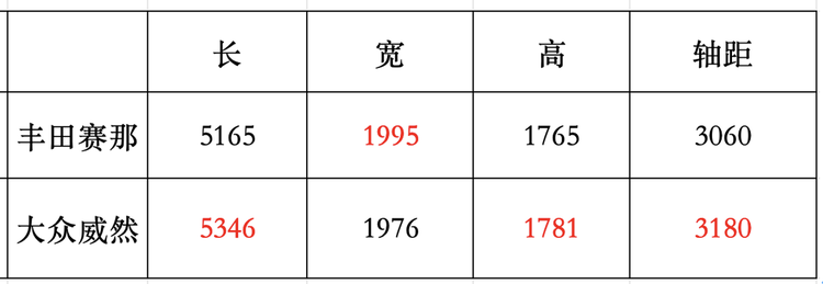 从账面数据看,大众威然拥有5346毫米车长+3180毫米轴距,妥妥的“大块头”;而赛那则是5165毫米车长+3060毫米轴距,尺寸略小一圈,更强调灵活性。
