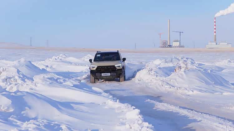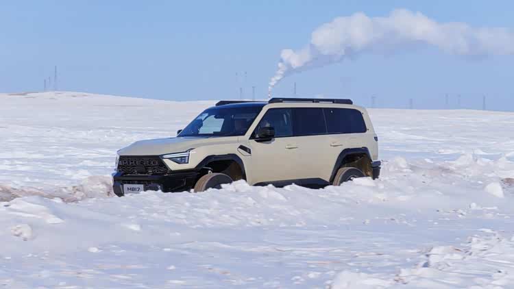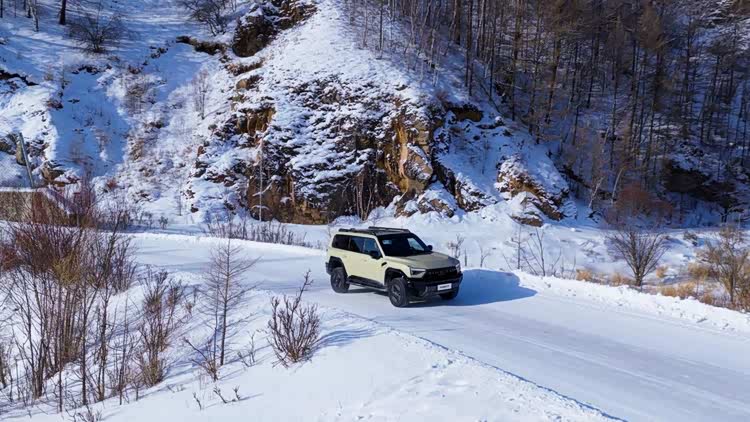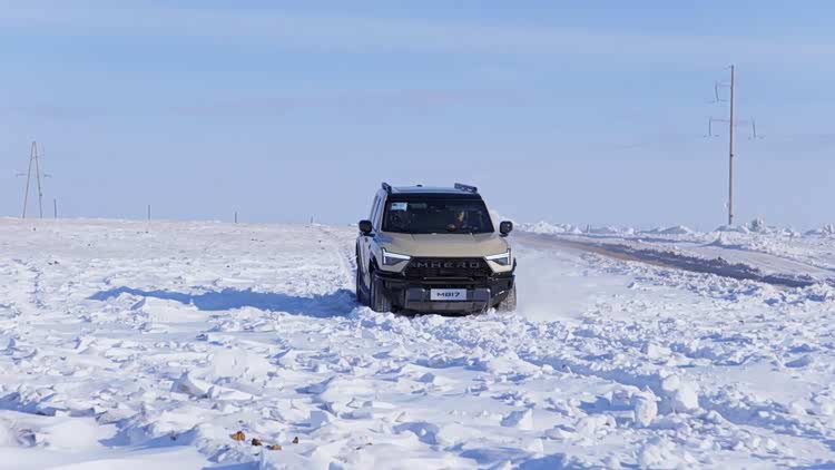 当然,也有极端的情境更显凶险。为了折腾M817 Hero版,我把它陷入没过小腿的雪地,这时“深雪”驾驶模式才有用武之地。猛士在关闭ESC辅助系统后,会更精准地通过微调扭矩来驱动车轮,我再打开Hero版独有的前后机械差速锁,轻微带动转向的同时给油,M817 Hero版如同旱地拔葱一般,顺着松软的雪花攀爬而上,整个动作行云流水。