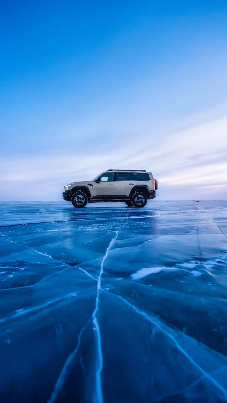 穿越过最后的非铺装道路,猛士M817 Hero版终于带我来到呼伦湖。这里全年有近半的时间处于冰封状态,而我到达的时候,湖面冰层厚度已经超过1米,在咨询过牧场主后,我把M817 Hero版开进了这片2315公里的滑冰场。