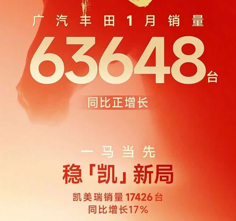 广汽丰田凭借经典车型韧性和转型决心实现逆势增长,成为合资品牌中的亮点。1月广汽丰田销量6.36万辆,同比增长近10%,在整体市场低迷的背景下展现出强大的品牌号召力。