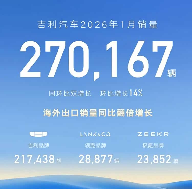 出口业务更是实现跨越式增长,1月海外出口6.05万辆,同比增长121%,环比增长50%,全球化布局逐步落地,为全年冲击345万辆销量目标奠定了基础。