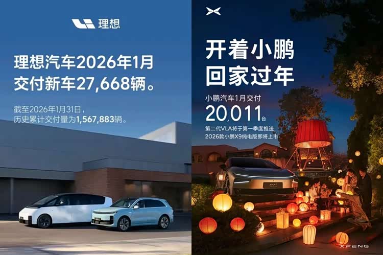 与之形成对比的是,理想汽车和小鹏汽车面临阶段性调整压力。理想汽车1月销量2.77万辆,虽基数较高但同比下滑7.55%;小鹏汽车交付量超2万辆,同比下降34%,环比下滑46.6%。两大品牌均处于产品改款与战略调整期,旧款车型竞争力减弱、新款车型尚未大规模交付,导致短期销量承压,能否快速完成产品迭代成为其重回增长轨道的关键。