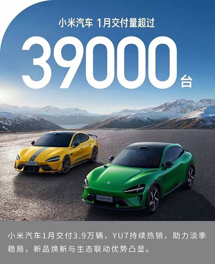 1月的淡季稳局,既是YU7产品力的市场验证,也是新一代SU7的预热铺垫,更彰显了小米从新势力头部向行业主流玩家迈进的坚实步伐。