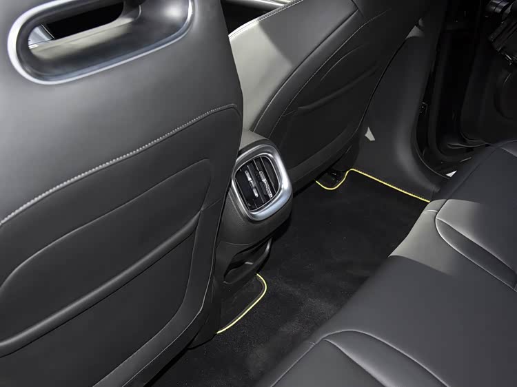 内饰用料与舒适配置方面,皮质多功能方向盘支持手动上下+前后调节,电子怀挡换挡提升座舱简洁度,前排座椅为仿皮运动风格,主副驾均支持电动调节,主驾带加热、4向腰部支撑与记忆功能,前排座椅支持加热功能;后排座椅可比例放倒,前后中央扶手与杯架保留实用性。音响系统由Beats调校,13喇叭营造沉浸式声场,64色车内环境氛围灯、自动空调与热泵系统、温度分区控制、PM2.5过滤与香氛装置(选装)等均有配备。