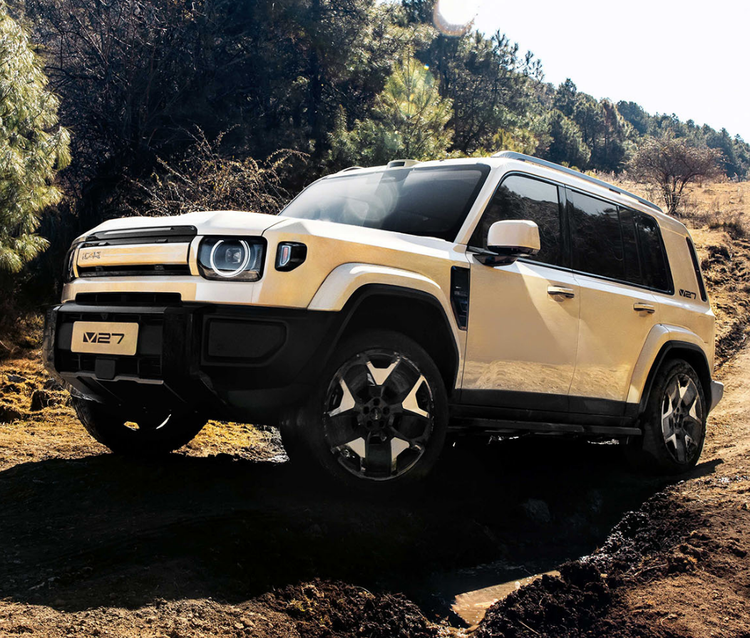 iCAR V27是中大型“方盒子”SUV,已开启盲订,外观融合硬派与复古元素,颜值高。车长5055mm(备胎版),轴距2910mm,有1.5T增程系统,四驱功率大,纯电续航超200km。