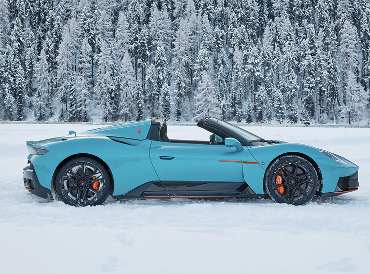 核心部分,玛莎拉蒂MCPURA Cielo FROZEN MAGMA搭载了玛莎拉蒂家族的“Nettuno海神”3.0T双涡轮增压V6发动机,配备专利预燃室技术,最大功率630马力,峰值扭矩730牛·米。传动匹配了8速双离合变速箱并采用中置后驱的布局。悬架采用了前后双叉臂式独立悬架的组合,这种结构能提供精准的操控性和优异的侧向支撑力,是高性能跑车的典型配置。车身采用了碳纤维单壳体设计,玛莎拉蒂MCPURA Cielo - FROZEN MAGMA甄选丰富高阶选装配置,涵盖碳陶制动系统、电控升降底盘,以及全套高阶驾驶辅助套件。