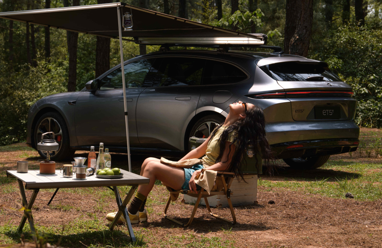 产品力方面,蔚来ET5T作为一款纯电版本的中型旅行车,它相比传统的燃油车,有着更强的适应能力和更广泛的使用场景。比如,面对户外野炊、郊游和露营等场景,它所搭载的100度电池包,拥有3.3kW的外放电功能,可轻松满足一家人的烧水煮饭,甚至是烤肉和吃火锅。