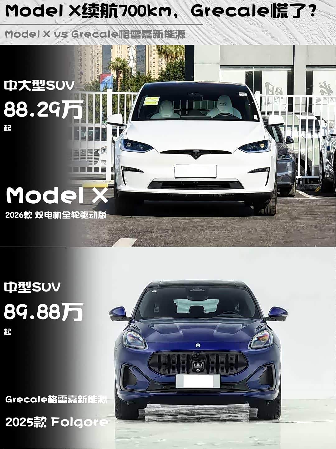 Model X指导价88.29万 vs 格雷嘉89.88万