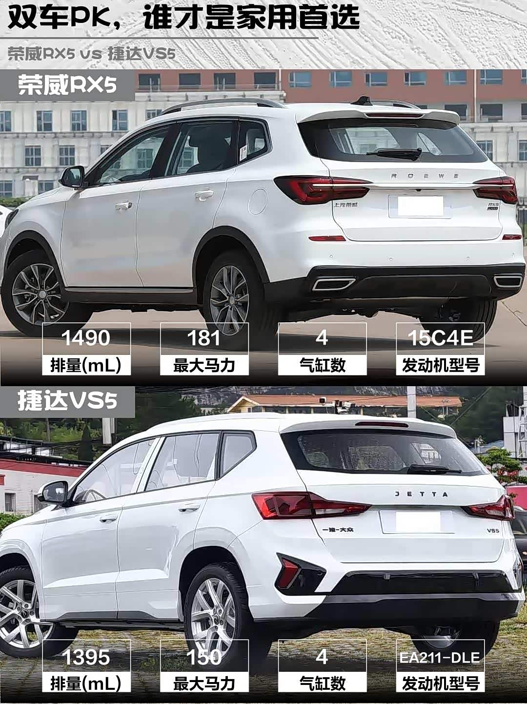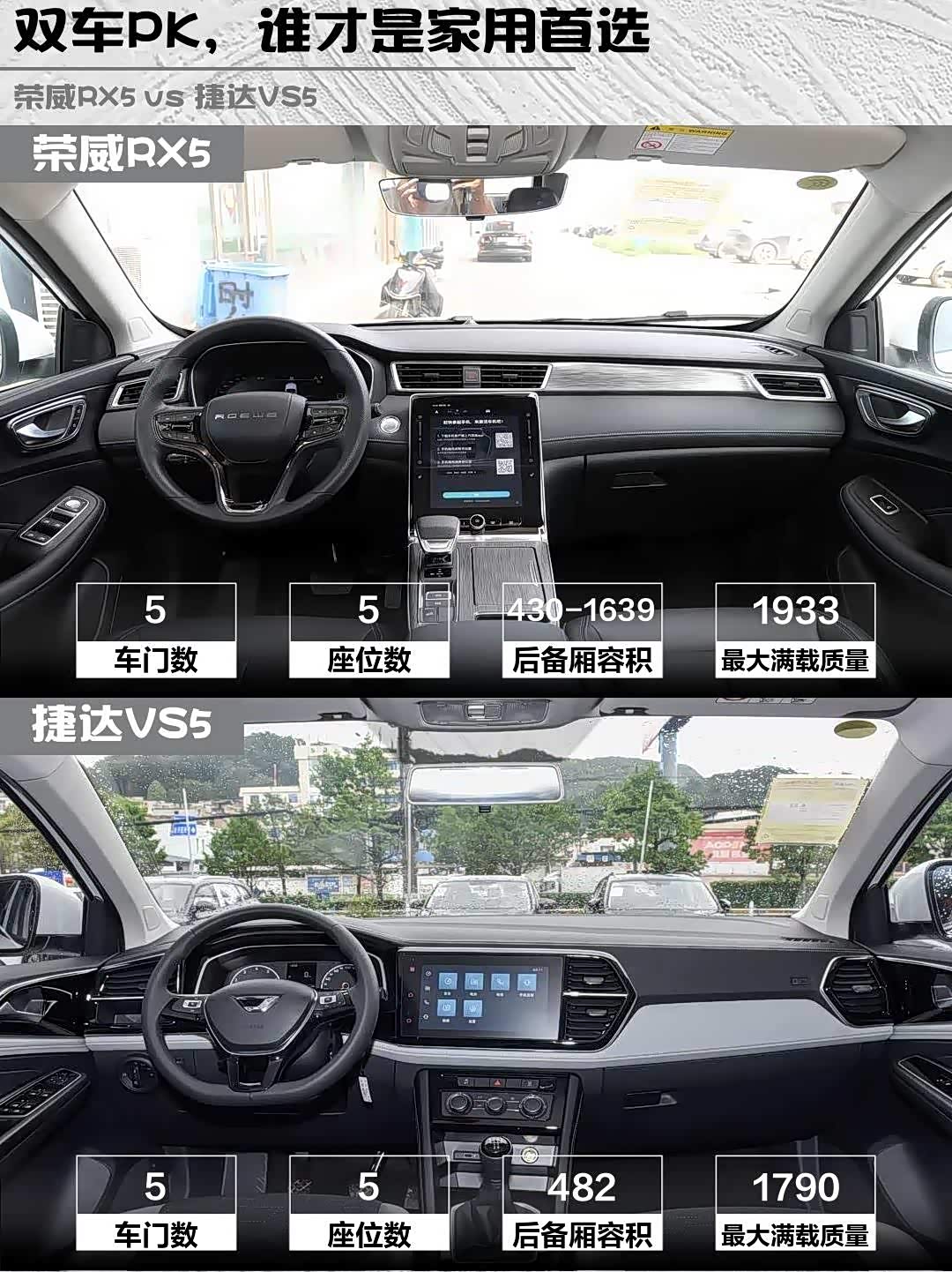 荣威RX5的寰宇灰车漆+贯穿式尾灯简直长在年轻人审美上✨ 14.1英寸中控大屏一上车就赢了,电子挡把的科技感直接拉满。捷达VS5走的是经典德系风,锰石黑配色沉稳但略显保守,8英寸屏(可选10英寸)在2026年确实有点复古了...