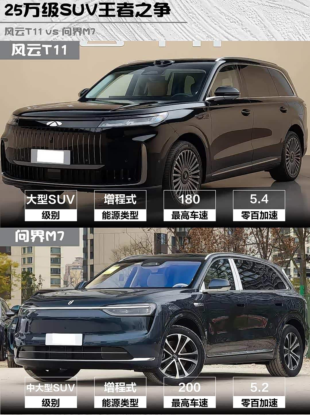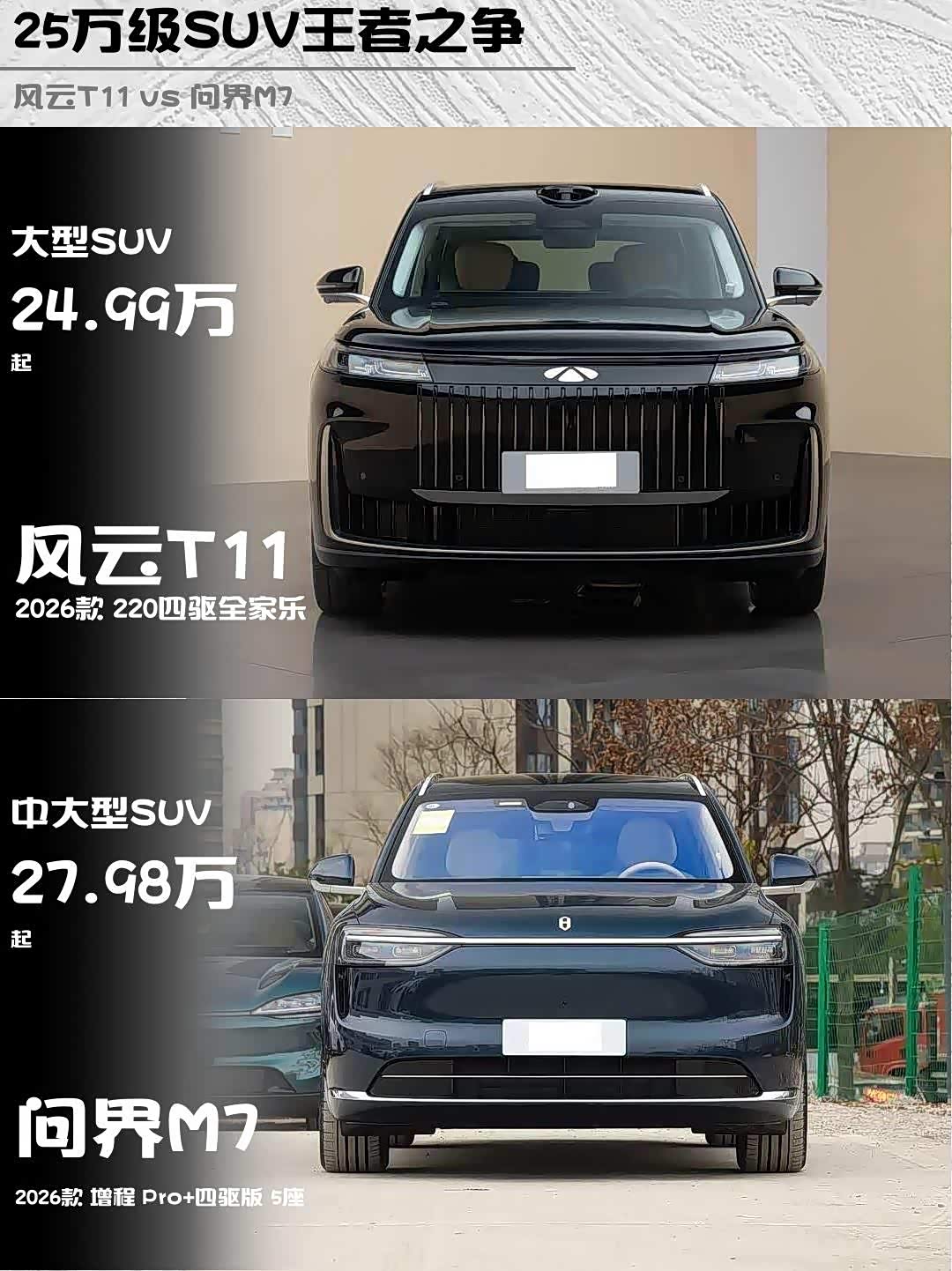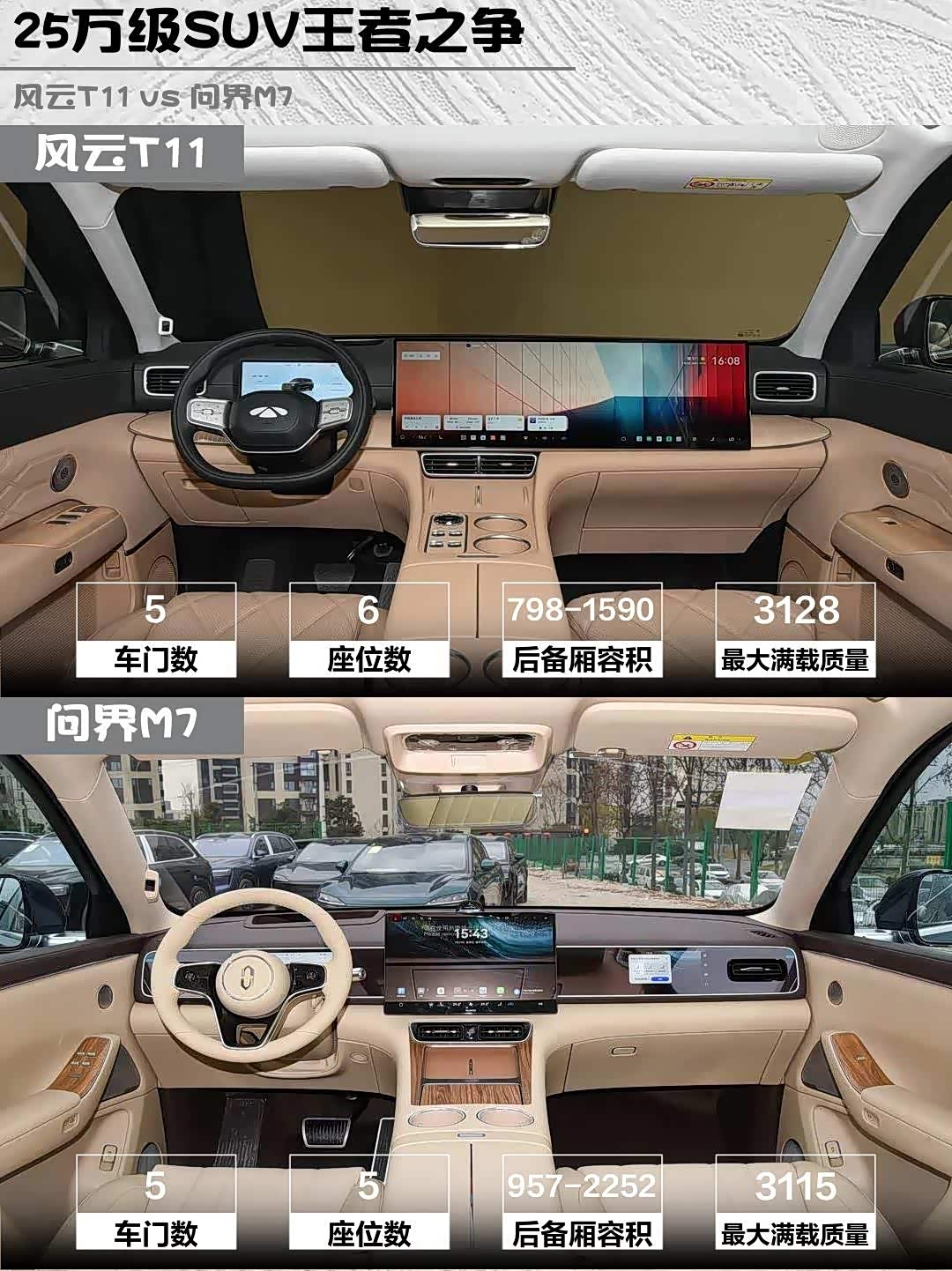 最近在选家用增程SUV的朋友看过来! 风云T11(参数|询价)和问界M7这两台热门车我都深度试驾过,今天从家庭用户最关心的6个维度做个硬核对比🔥