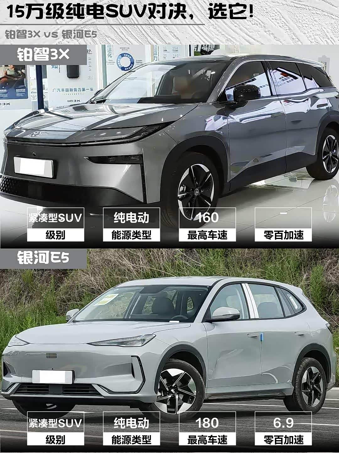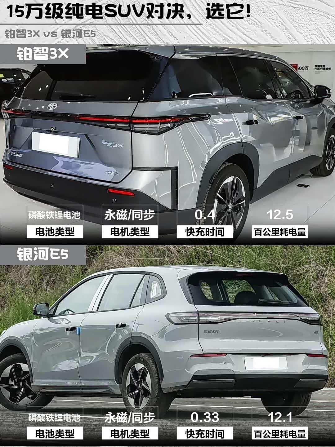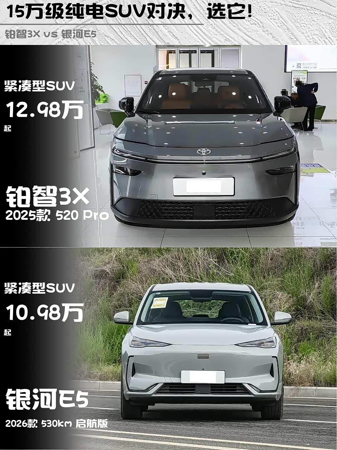 最近在15万级纯电SUV市场纠结了好久,最终锁定了两款热门选手: 铂智3X(参数|询价) 2025款 520 Pro和银河E5 2026款 530km启航版。深度试驾+参数对比后,发现这两台车简直是「性格迥异」的双生子!🤔