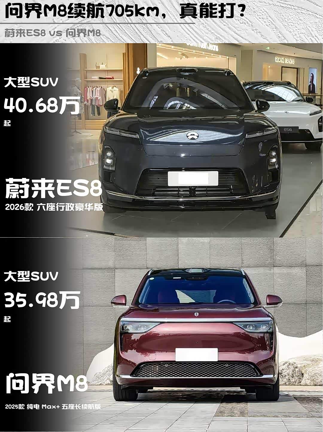 车家号·0浏览·2026-02-04 08:39 · 北京最近深度体验了两台40万级纯电大块头—— 蔚来ES8(参数|询价) 2026款六座行政豪华版和问界M8 2025款纯电Max+五座长续航版,发现这两台车完全走的是不同路线!🤯