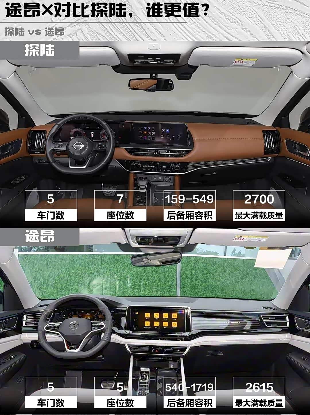 最近在选7座SUV的朋友看过来!今天深度对比两款热门车型——东风日产探陆2024款 380VC-TURBO 四驱智驾版 7座和 上汽大众途昂(参数|询价)2025款 途昂X 380TSI 四驱出众版,看完这篇你就知道怎么选了!🔥
