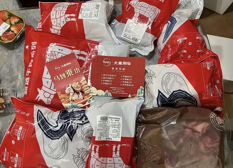 上汽大乘用车有员工表示其的春节礼包是8选一,如牛羊肉、日用品、山姆零食礼盒等。其中,牛羊肉包括:牛肉饼4斤、筋头巴脑4斤、牛脊骨4斤、牛腿肉2斤、牛腩肉4斤、牛窝骨2斤、牛肋条1斤、羊手把肉4斤,合计肉的重量有25斤。
