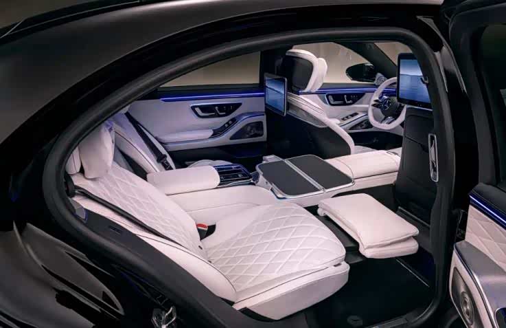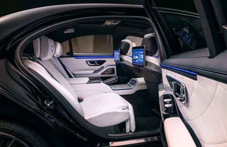 至于副驾驶侧,新款奔驰S级保留了12.3英寸副驾驶娱乐屏,其可以用来看电影、玩游戏等,其配置的注意力监测系统还可以适当调暗娱乐屏,以减少屏幕对驾驶者的干扰。但有一说一,在国产新能源车上面,这种设计已经不再高级,缺乏差异化的科技体验,且较小的屏幕在观影体验上差强人意。而在座椅配置方面,新车前排提供2个可发光杯架,2个手机无线充电面板,前排座椅内置19个可调节电机,具有“热石按摩”等6种按摩模式,搭配可加热式(44℃)安全带(可通过座椅加热按键开启),座椅豪华程度仍然是同级中上游的水平。