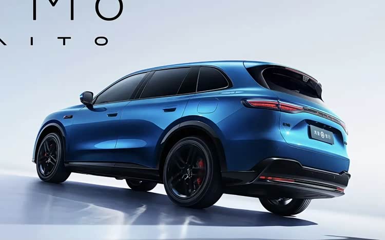 尾部设计也有创新,取消了贯穿式尾灯,使用分体设计。尾灯和前大灯一样采用了星钻灯组,最上层则是小蓝灯。虽然尾灯是分体式设计,但整个尾部依然营造出一体感:中间是可点亮的悬浮式AITO车标,底部是黑色饰板,外围一圈有镀铬饰条。