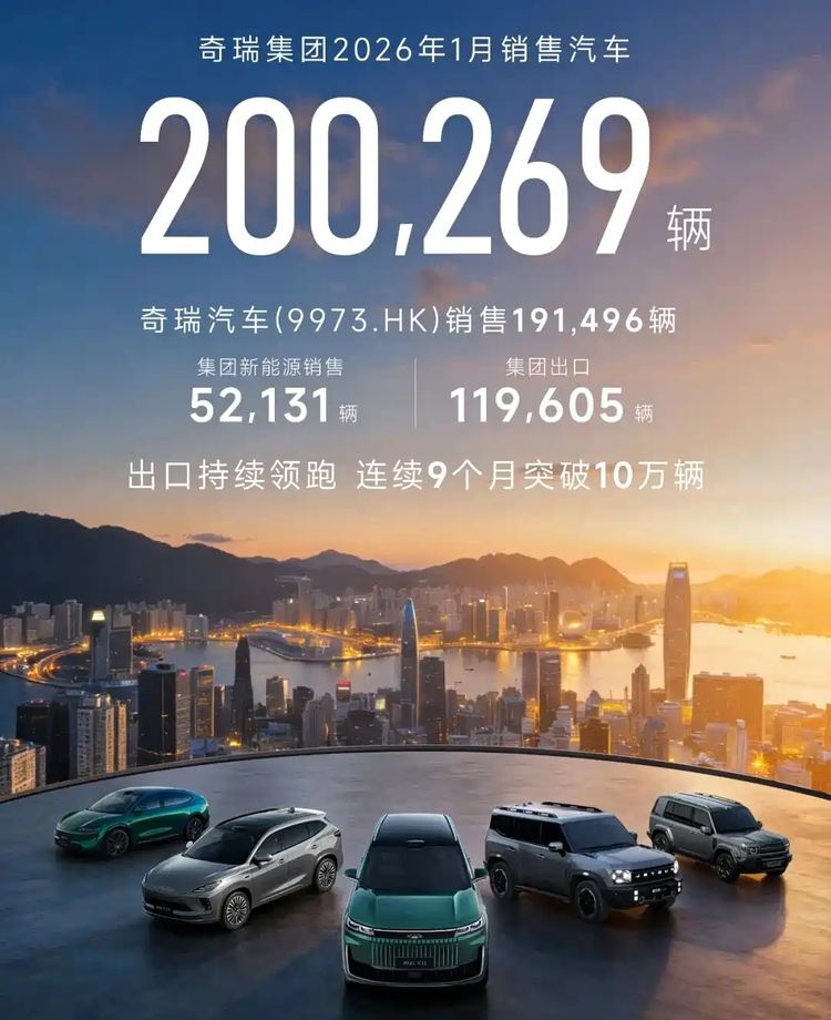 说到“出海大佬”,那还得是奇瑞,出口汽车销量119605辆,同比增长48.1%,连续9个月出口突破10万辆,继续稳居中国汽车出口第一。整个奇瑞集团一共卖了200269辆,其中新能源车52131辆,占比不算高。