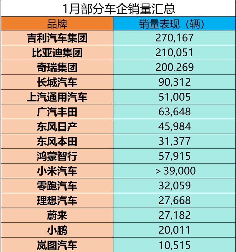 2026年刚开始1个月,各家车企就迫不及待晒“成绩单“了,在购置税补贴减半+年底冲量完成的影响下,各家销量表现如何,谁拿了开门红,谁又是“开门凉”?
