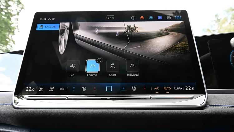 简洁的腰线,普通的车门把手,大尺寸轮毂,都不会缺席。车顶行李架提升了实用性,车身尺寸的全面增大,也增强了各方面的空间表现。车尾部分,车顶扰流板不会缺席,保证了运动属性,后风挡其实还是相对倾斜,尾箱线条则相对平直,贯穿式尾灯也和帕萨特Pro大体相似。后保险杠部分还有着贯穿式的结构,让整车的风格形成统一。在内饰部分,当然也是和国产兄弟车型相似的设计,只是副驾驶侧没有娱乐屏,向驾驶侧偏转的中控屏幕,液晶仪表盘、Hud组成标准的三件套。