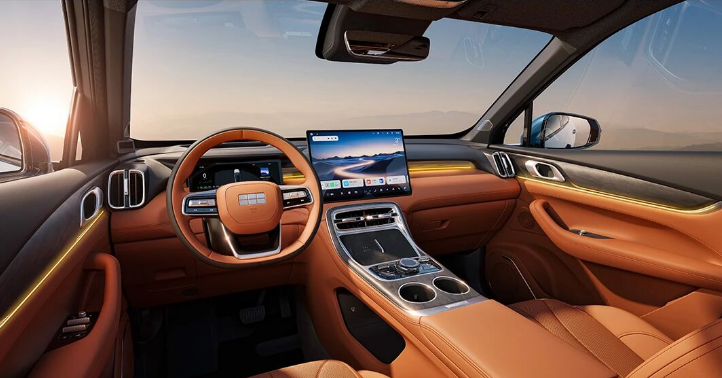 银河M7的车身尺寸为4770/1905/1685 mm,轴距2785mm,相较现款银河L7,车身长度增加了60mm。无论是前排还是后排,都能提供更加充裕的驾乘空间。内饰采用时尚简洁的设计风格,配备全液晶仪表盘、大尺寸悬浮式中控屏,中央扶手区保留了大量物理按键与水晶质感旋钮,配合氛围灯和木纹饰板,在提升实用性的同时,也增强了豪华氛围。