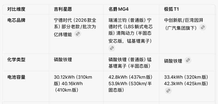 看似新出的奇瑞QQ3EV,各方面都要比星愿强一点,但可惜的是电池 它没有跟上。星愿现在全系用的都是宁德时代的电池,在这个价位,宁德时代是绝对的金字招牌。而奇瑞QQ3EV用的是国轩高科电池,也算是二线品牌中不错的产品,但和宁德时代比,还是有一定差距的。不过要是和名爵MG4的瑞浦兰钧、极狐T1的巨湾因湃比,貌似又要强一点。