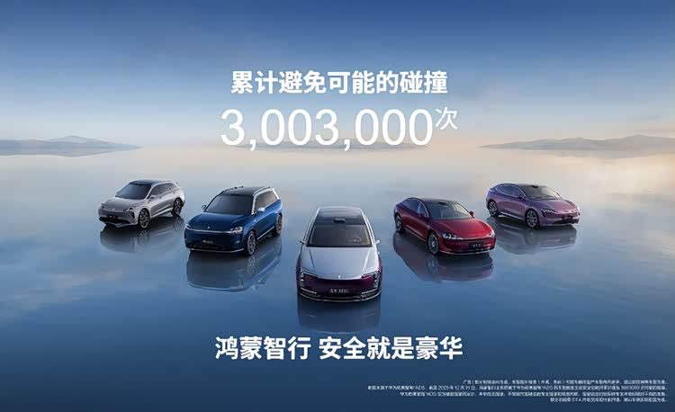 以辅助驾驶为例,根据华为乾崑智驾ADS的数据,截至2025年12月31日,鸿蒙智行全系搭载于华为乾崑智驾ADS的车型触发主动安全功能并累计避免了3003000次可能的碰撞,完美诠释了“安全才是最大的豪华”。