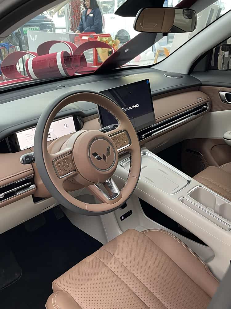 内饰暂未曝光,不过通过细节可以看到悬浮式中控大屏、一体式贝壳座椅,或采用缤果S的那一套设计语言。参考来看,简洁的环抱式中控台上配备贯穿式镀铬空调出风口,12.8英寸悬浮式大屏和8.8英寸内嵌式仪表屏营造出科技氛围,并支持灵语AI大模型、手机互联、多场景模式等。同时还将配备多功能方向盘+电子怀挡、镂空副仪表台+手机无线快充、无钥匙进入+智能上下电、主驾电调、前排座椅加热等配置。而缤果Pro将提供马鞍棕+奶盐米双拼色内饰,并采用五座布局。