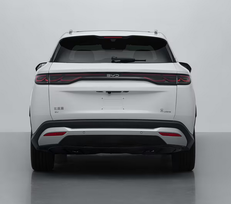 车尾部分延续了贯穿式尾灯方案,与车头形成前后呼应,同时在尾门上方布置了尺寸较为明显的扰流板。该设计不仅承担造型功能,也有助于在高速行驶状态下对车尾气流进行整理,对纯电SUV而言,有助于提升高速稳定性并兼顾能耗表现。尾部整体线条较为平直,没有采用过度下压或夸张折线处理,这种风格更偏向实用取向,有利于尾门开口高度与后备厢装载便利性。对于家庭用户或经常需要装载行李、婴儿车等物品的使用场景来说,这种尾部结构更具实用价值。