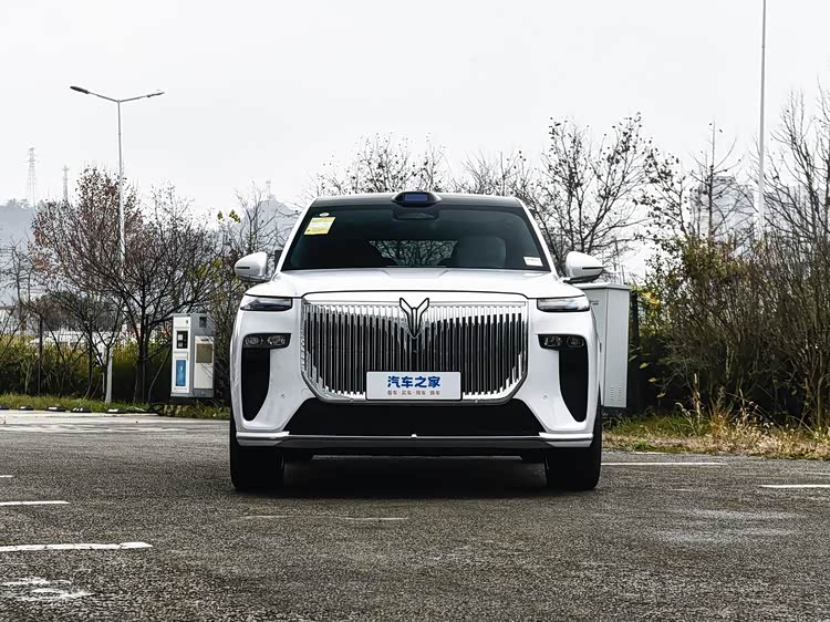 我们首先来看新车的外观设计方面,岚图泰山的前脸设计以“山海交融”为灵感,通过34道立柱光瀑格栅与贯穿式灯带,构建出兼具威严与精致的视觉冲击。格栅采用直瀑式镀铬工艺,中央嵌入自发光岚图LOGO,夜间点亮时如星河倾泻,辨识度极高。 分体式大灯组灵感源自甲骨文“水”字,上半部分为日间行车灯,下半部分集成远近光灯与投射灯,仪式感拉满。 车头线条方正而不失灵动,机舱盖隆起设计赋予力量感,整体气场媲美劳斯莱斯库里南的东方演绎。