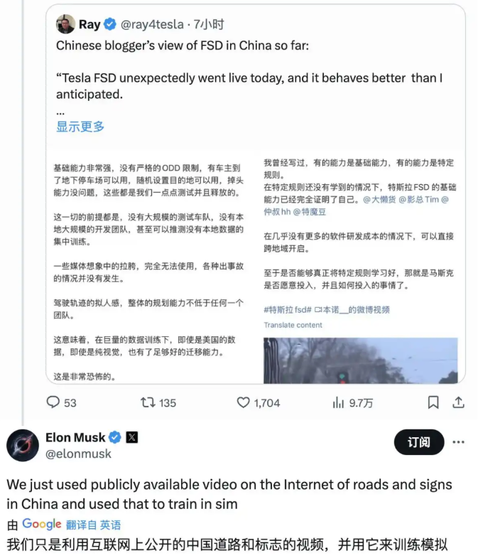要知道,当时的特斯拉无法将收集的中国行车数据上传到海外进行模型训练,美国也限制FSD在中国进行训练,只能通过互联网上的中国道路视频进行模拟。